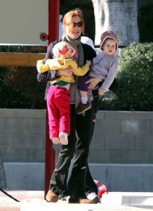 She had her hands full on Thursday as she took her adorable 2-year-old twin girls, Eden and Savannah (yellow top), to a Santa Monica park. Though it must have been hard juggling twins all day, Marcia seemed to enjoy every second with her playful girls! The trio admired the ducks, went for a slide, and little Eden even tried on mom’s shades! Here’s hoping daddy, Tom Mahoney, is doing well. He was recently diagnosed with cancer and is said to be responding well to treatments.