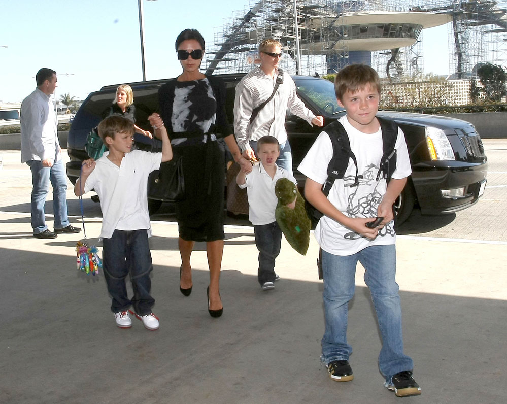 On playing soccer with her boys, Victoria said they use two palm trees out by the pool of their LA home and make her play goalkeeper. “That’s what this bruise is,” Vicky said, pointing to a mark on her leg. “I’ve fallen down playing bloody soccer.” Posh Spice went on to say that the family is staying in the States: “We’re not going to leave L.A.,” she said despite David’s recent acceptance of a stint with Italy’s AC Milan team.