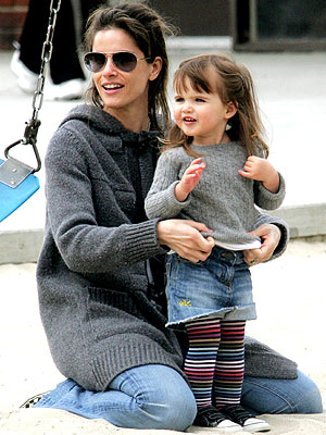 ‘Frankie‘ Frances Pen Benioff, 2, child of Amanda Peet, 37, and writer David Benioff, got stylish with her denim mini jeans and coloring stripes tights with her converse Kids Chuck Taylor shoes in black.