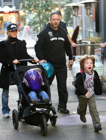 Having spent a nomadic childhood in Australia, moving from town-to-town with his parents, Russell Crowe is grateful that his successful acting career has enabled him to stay put with wife Danielle Spencer and their two sons Charles [Charlie] Spencer, 5, and Tennyson Spencer, 2 ½. “My kids are growing up in a much more affluent environment than my wife or I experienced in childhood,” he notes. The couple make it a point, however, to keep the boys connected to the way the rest of the world lives.