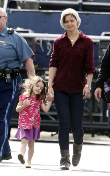 Katie Holmes and Suri Cruise looked so excited to visit Tom Cruise on the set of his new film, Wichita in Boston this afternoon, September 30. The two have been regular visitor on the set.