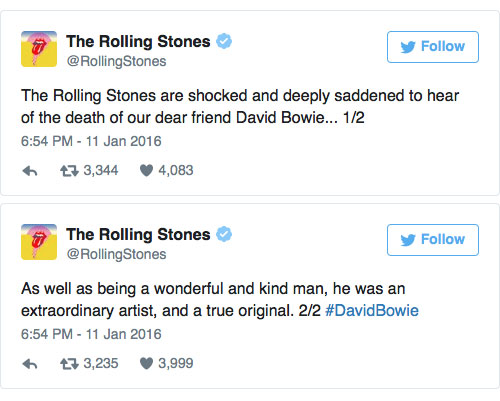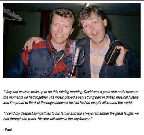Many celebrities pay tributes to David Bowie on their social media such as twitter and facebook.